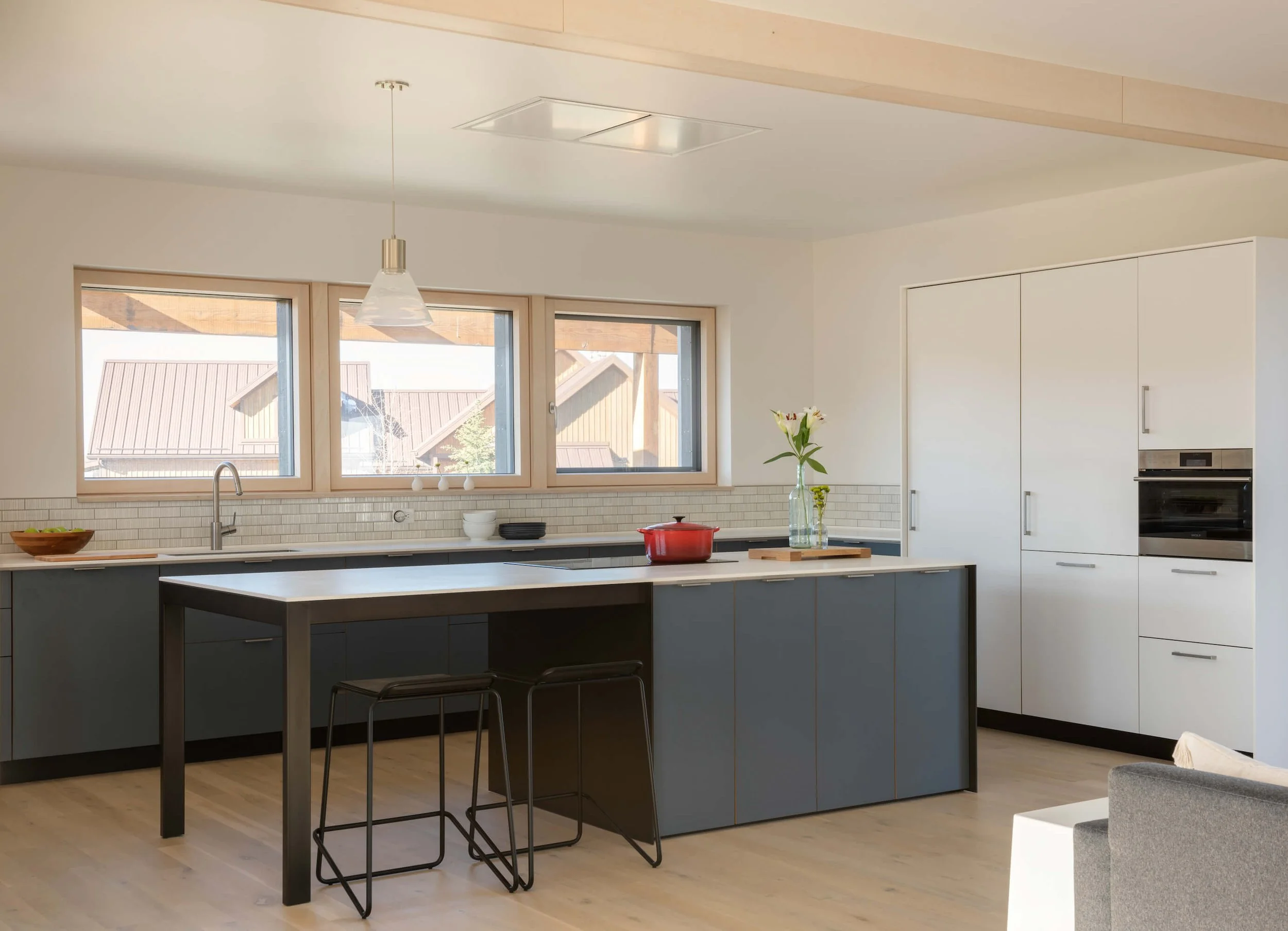 Appropriate windows, insulation and air-sealing details throughout keep the heat in the winter in the house - and keep it out during the summer. The ventilation system consistently supplies constant fresh air making for superior air quality, health and comfort. This is the first passive house in Gallatin Valley certified by the Passive House Institute PHI.
