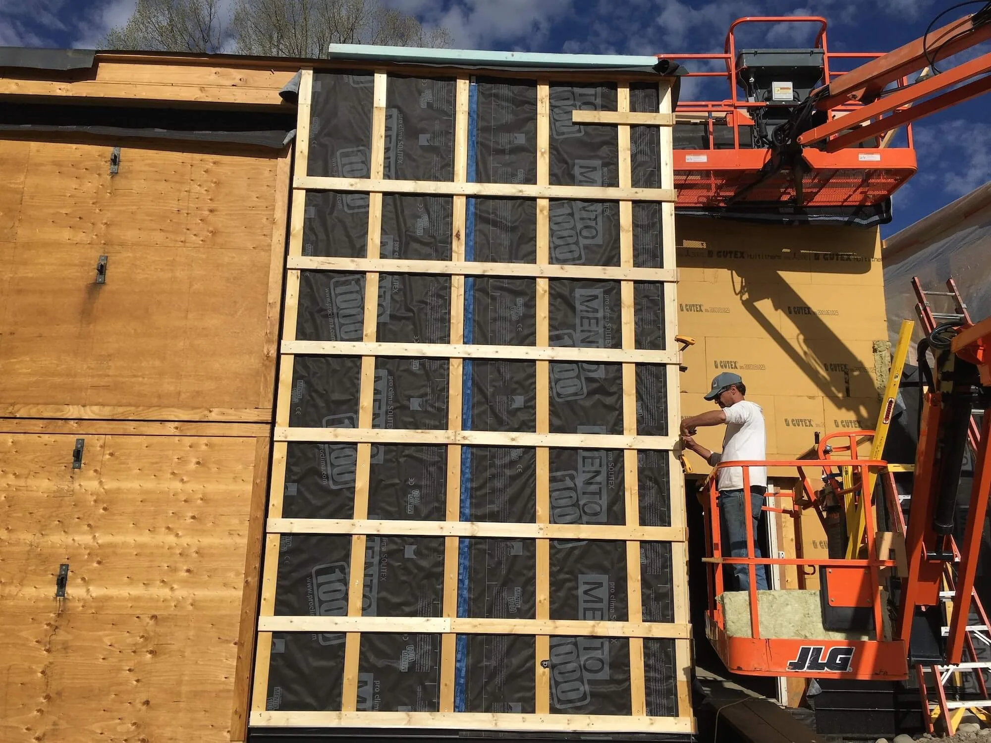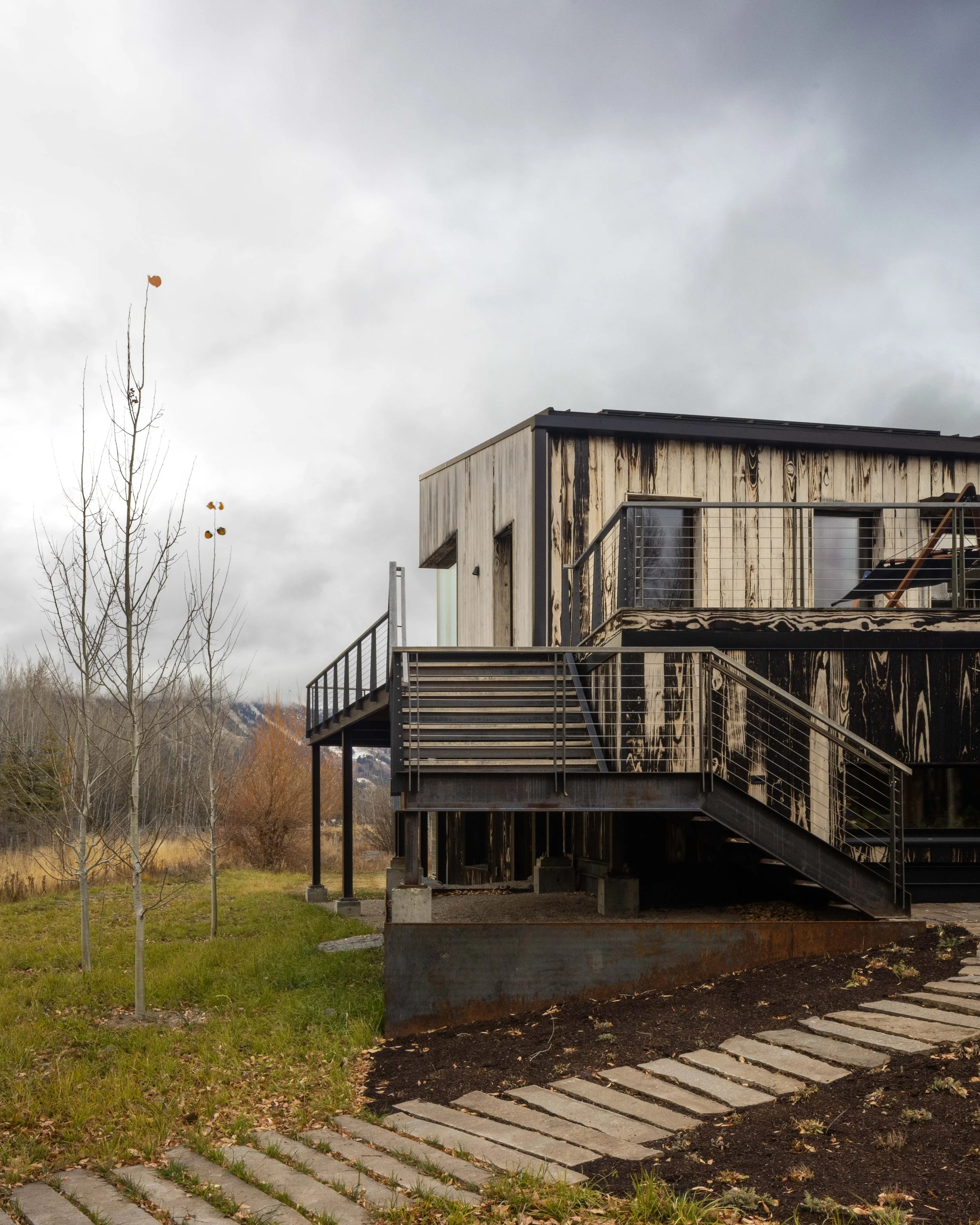 Completed summer 2023. The shop and apartment is designed for a father and son to connect with nature. The project is on track to meet the Low Energy Passive House Standard and to be certified Carbon Neutral by the International Living Future Institute. The materiality of this home is all natural and low carbon. This tricky volume is air tight with thermally broken windows and doors and a fully functioning air tight garage door.